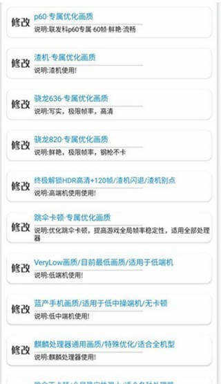 2、根据你的手机和CPU选取合适的优化包,轻易收获更加舒适的游戏体验。