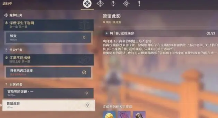 以上就是这篇文章有关原神暂留此影任务的两个人是谁的所有内容了,这样就能完成任务了。更多游戏相关资讯内容,敬请关注电玩圈手游网。